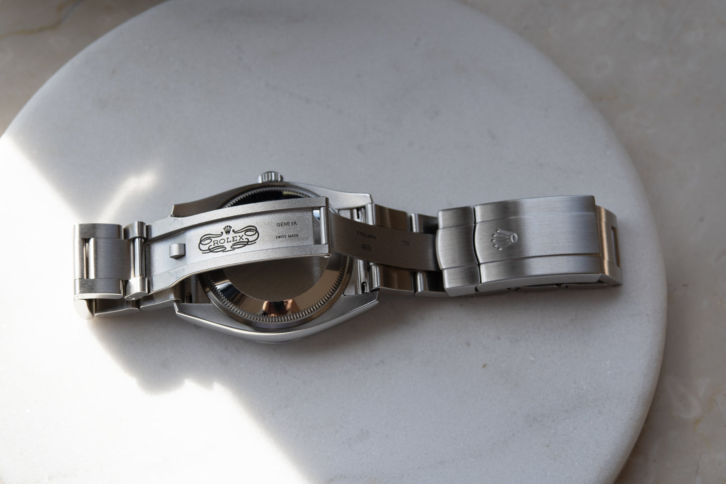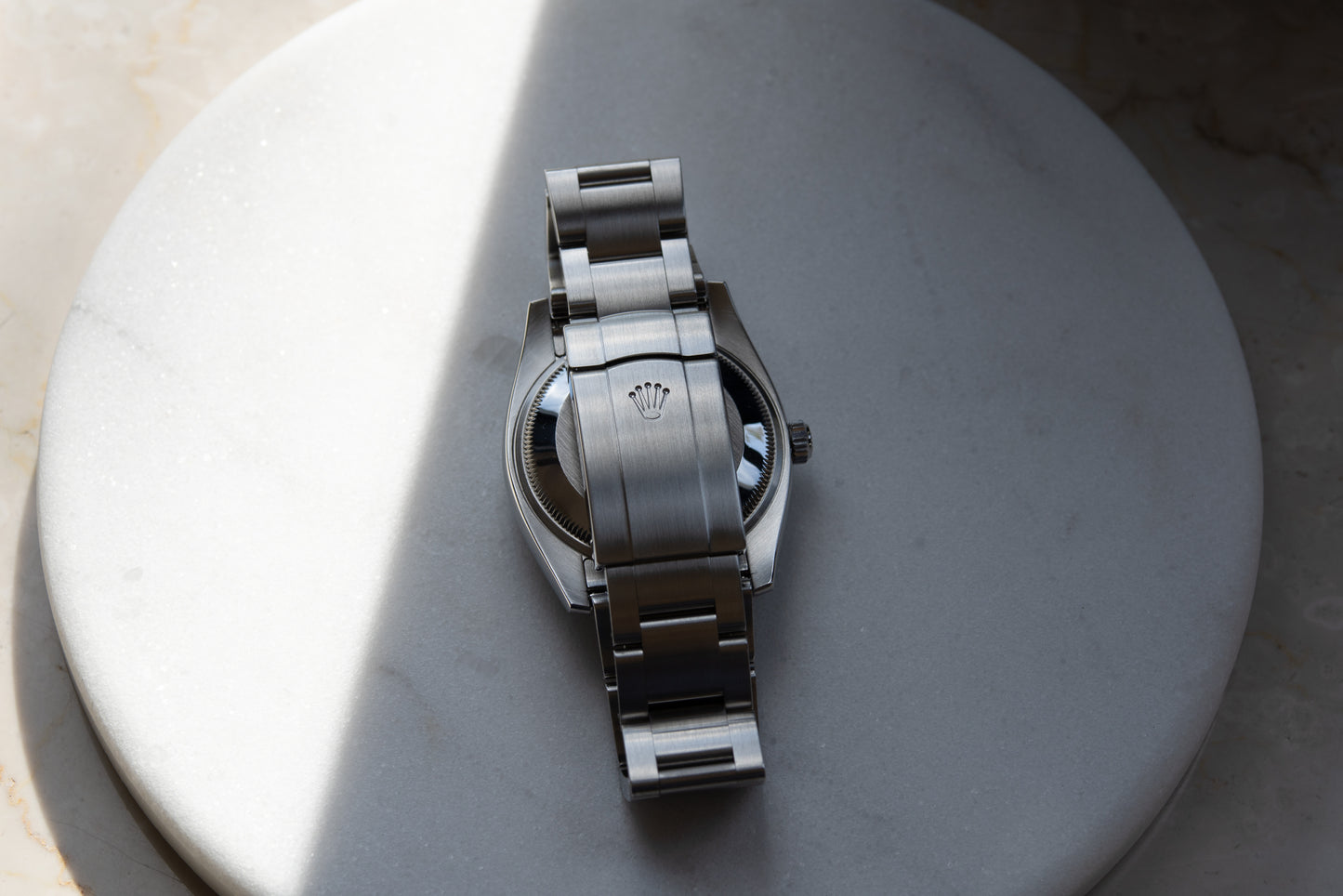 Originally introduced in 1945, the Rolex Air King is one of Rolex' oldest models still in production today. Its 34mm case size was considered large at the time, hence the “King” moniker. Rolex released the Air King reference 114200 in 2007. Watch enthusiasts were surprised to see the Air-King move into a more modern era – one that embraced a more contemporary feel and bolder features. While the ref. 114200 still boasted a 34mm case, it was bulked up with wider lugs and an overall larger appearance on the wrist. The dial was also a big change, as you could now choose from an even wider selection of colors – for the first time, you could even choose a fancy 18k white gold fluted bezel. Another first was the new, redesigned 904L Oyster bracelet and clasp with completely solid links. The ref. 114200 still boasted the cal. 3130 but this time, it was finally COSC-certified, bringing the Air-King right in line with the rest of Rolex’s collection.